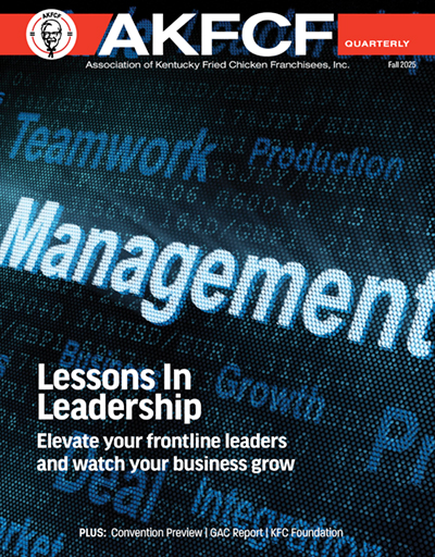 In Politics and Government, our DC Lobbyist, Dan Gans, taught us years ago, “You can have a seat at the table…or…you can be on the menu”! Your AKFCF Government Affairs consists of business minded Representatives, nominated by you, to work on the behalf of all KFC Franchisees in supporting, suggesting and moving legislation that is a benefit to you and our brand. At times working to enhance and get ideas into law and other times working in opposition to legislation deemed harmful to your business.